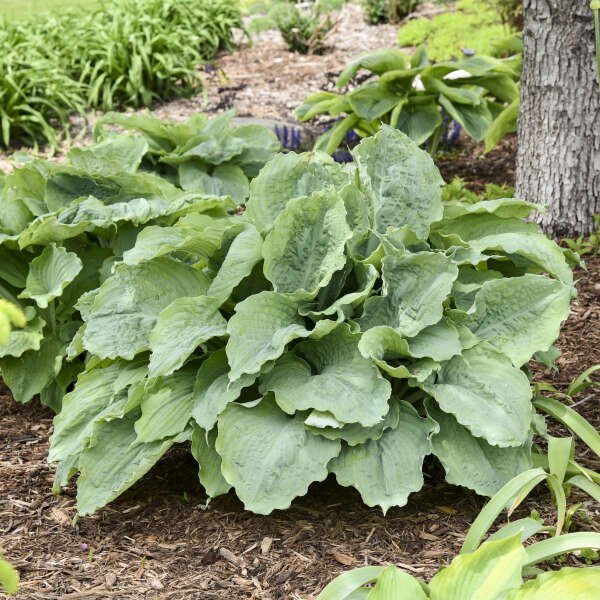 Attractive, heart-shaped, thick and heavily corrugated blue leaves have wavy margins. The large size of this plant also translates to large leaves: they can get up to 9" wide by 11" long. Pale lavender flowers appear in early to midsummer. Use this blue hosta to add some color to your shade garden. This plays well with ferns, hellebores, and other hostas.